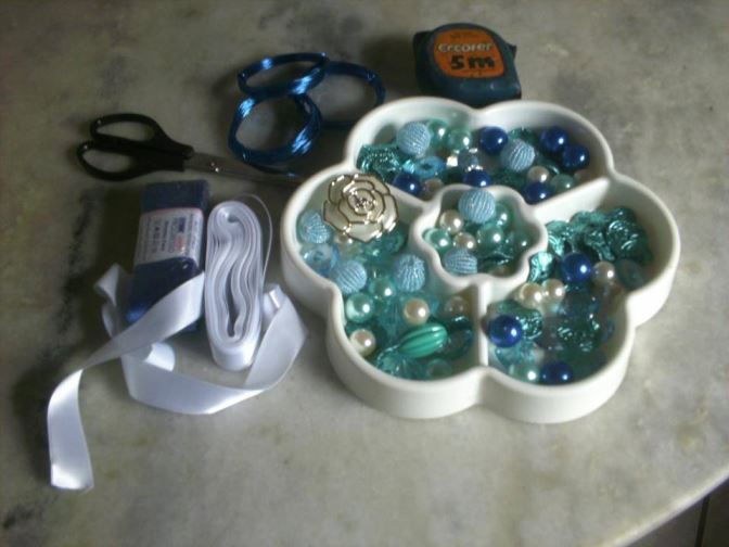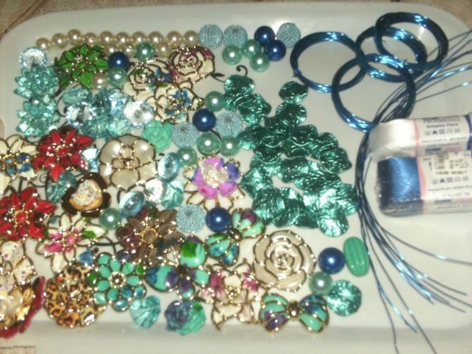 Passo 01) Reúna todo material que pretende usar. Reciclagem nessas horas ajuda muito, pois aquela bijou linda e quebrada que você não usa mais pode ser um toque a mais no seu bouquet. Lembre-se que a quantidade de broches e botões ditará o tamanho do bouquet, que pode ser redondinho ou estilo braçada.