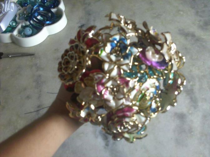 Por isso, resolvi postar um passo a passo para a montagem de um bouquet de broches que vai passar por muitas gerações família afora… exagero bruto!!! Rsrsrs