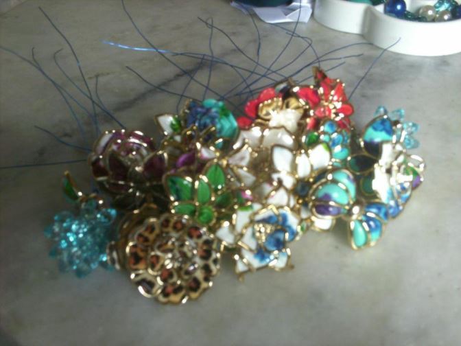 O passo a passo é bem simples e o único segredo é você ser um pouco mais delicada ao manusear as peças e o arame que é fininho e fácil de entortar com o peso das peças. Portanto, faça você mesma, meu amor um bouquet de broches e botões!!!