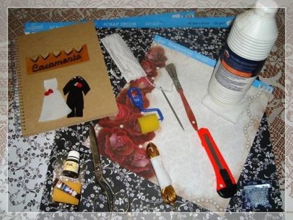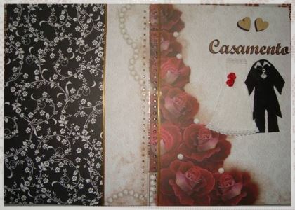 Itens de decoração da capa: aqui as substituições devem seguir sua criatividade, suas preferências… Apenas cuide para que fique harmonioso… Se você tem alguma identidade visual do casal, por exemplo, caricatura, ela também pode ser usada, assim como uma bela foto dos noivos. Apenas imprima em papel mais grosso, para melhor acabamento.
