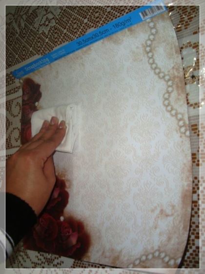 • Pressione o papel de Scrapbooking para que não enrugue ou crie bolhas.