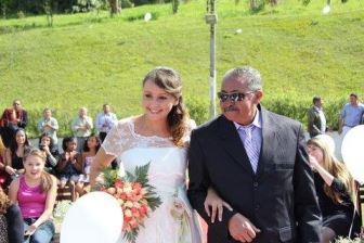A Igreja estava fora do orçamento, Juiz de paz no sítio? Muito caro! Decidi casar de manhã no cartório no primeiro horário, e embora pro sítio! Meu cunhado que também era padrinho do meu noivo fez a cerimônia.