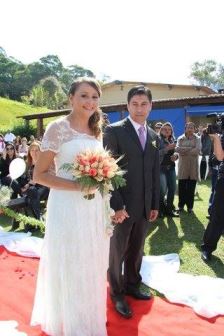 “Um dia decidimos oficializar nossa união que é de muito amor, carinho, respeito e cumplicidade. Tive apenas quatro meses pra organizar tudo. Sonho de menina era casar com véu e grinalda, igreja etc. etc., mas minhas economias não eram lá essas coisas. Com pouca grana comecei a aventura deste mundo que é o Casamento! É incrível, quando você diz que é um casamento as cotações vão até o céu! Você pode gastar de oito até 80 (mil) ou o céu é o limite Decidi fazer tudo que eu sabia fazer, decoração, buquê, lembranças, convite, depois que me dei conta que sou a noiva! Como fazer tudo?