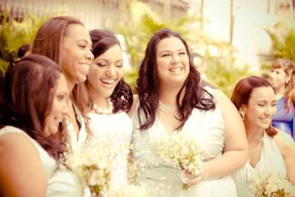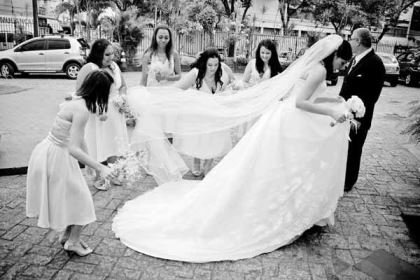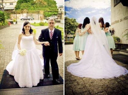Quando ouvi o cortejo entrando de dentro do carro vi que tinha chego minha hora. Fecharam as portas da igreja e saí do carro. Estava calma. Minhas damas lindas estavam ali pra me ajudar! Arumei a saia e me posicionei.