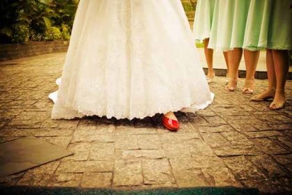 – Minha sapatilha (meu noivo tem o mesmo tamanho que eu e optei em não usar saltos) comprei por um precinho camarada e era vermelha;