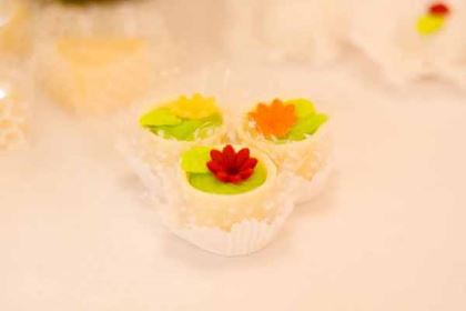 – Minhas lembrancinhas eu que fiz. Tanto as latinhas com confetes como os potinhos com bala de côco;