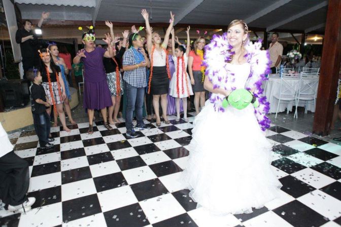 O primeiro fornecedor que fechamos foi o DJ que conhecemos no casamento de amigos nossos e infelizmente esse foi o que nos decepcionou, no dia do casamento ele me liga quase na hora que estava saindo do dia de noiva para dizer que tinha quebrado seu carro, fiquei super tensa, quase nem conseguia tirar as fotos, mas a equipe de foto e filmagem que estava comigo me ajudou demais a manter a calma. A cerimônia foi realizada sem som isso foi super tenso na hora, alguns amigos da igreja cantaram na cerimônia e devido a essa grande falha tiveram que fazer tudo a capela, algumas pessoas que não perceberam nada, mas pra mim sempre fica aquela frustração do que poderia ter sido, a nossa sorte é que a equipe de foto e filmagem como já falei foi super profissional e tinha um microfone individual para captar a voz do pastor que também foi ótimo e teve uma grande sabedoria pois devido a falha do nosso “amigo” DJ mudou todo seu sermão adaptando-se a falta de som, graças a Deus deu para salvar o áudio de suas palavras que com certeza nos abençoaram muito naquele dia, infelizmente as musicas que foram cantadas não deu para salvar e tiveram que colocar as originais no vídeo, pois na filmagem não dava pra ouvir nada, enfim o DJ chegou super atrasado, muito mais que eu, que pedi para o meu primo que me buscou no salão para ir devagar e ver se dava tempo dele chegar antes, mas foi uma tentativa em vão, ele chegou a tempo apenas para a recepção.