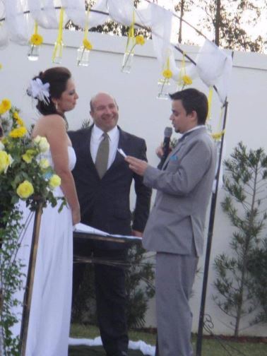 Daí havia só um problema, eu não conseguia chamá-lo de meu marido nem ele de minha esposa, não sabemos o porquê, mas era assim … então uma amiga minha disse “ah, vocês estão precisando de um ‘ritual de passagem’ pra se considerarem casados … vamos fazer uma pizzada no apartamento, umas 10 pessoas, no máximo” … mas a ideia da pizzada cresceu quando uma outra amiga chegou e disse “pizzada nada, vocês vão casar e vai ser na minha casa!” e foi assim que começou toda a saga …