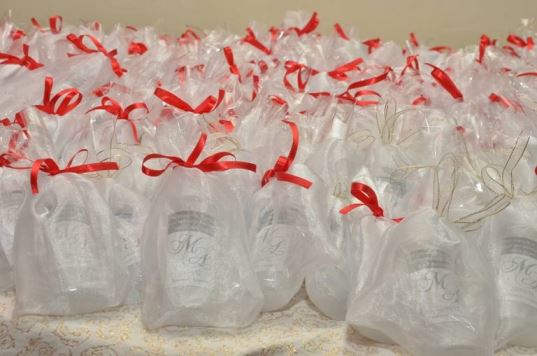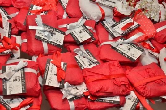 Alguns bombons estavam incluídos no buffet, mas achamos poucos. Daí encontramos uma promoção fantástica naqueles sites de compras coletivas e encomendamos então mais bombons e também as palhas italianas que foram embaladas no mesmo modelo de bem-casados, substituindo estes. São deliciosas, os convidados acharam uma ótima surpresa e couberam no nosso bolso!