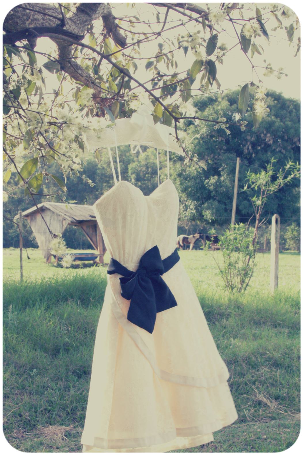 O primeiro passo foi encontrar o vestido de noiva, que foi bem fácil, pois já tinha em mente o que queria e também sabia onde vendia (não é um típico vestido de noiva). Minha mãe, que costura nas horas vagas, fez os ajustes e o cinto preto, o qual tanto queria usar. Preço total: R$ 250,00.