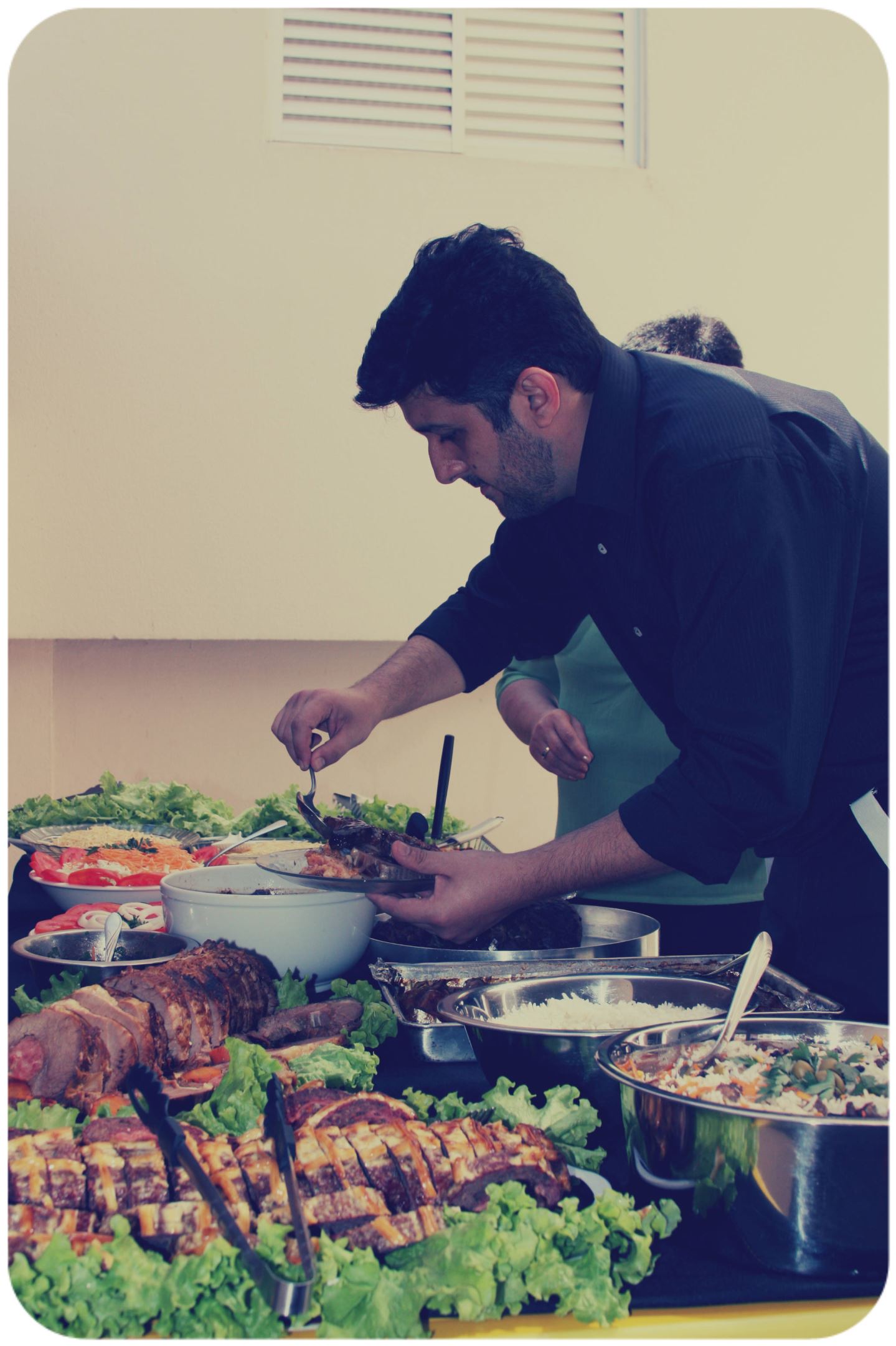 Servimos o almoço no salão de festa do prédio onde moramos, um dos meus padrinhos nos deu o aluguel das mesas e cadeiras.