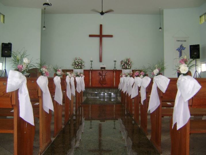 – Como sempre fui apaixonada por decoração e flores, e com os orçamentos altíssimos, decidi fazê-la junto com a esposa do pastor, e ela me deu uma força enorme. Na igreja existia laços brancos que tinham sido utilizados por outra noiva e me foram emprestados, as flores foram compradas na feira que acontece nas sextas em frente o Colégio Arnaldo, gastei R$220 incluindo as flores do meu buquê.