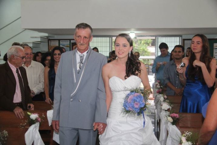 – Na sexta-feira pré casamento, corri daqui a ali, comprei as flores, busquei encomendas… No fim do dia, umas 23:30, ainda faltavam os refrigerantes, corri no supermercado 24H, cheguei em casa às 2h da manhã de sábado, e fui guardar as compras, foi quando o armário paneleiro caiu sobre mim, consegui segurá-lo e logo meu noivo também ajudou, despencou no chão panelas, pratos e inclusive presentes que nós já havíamos ganhado e guardado! Ganhei um arranhão no braço, no dia do casamento!