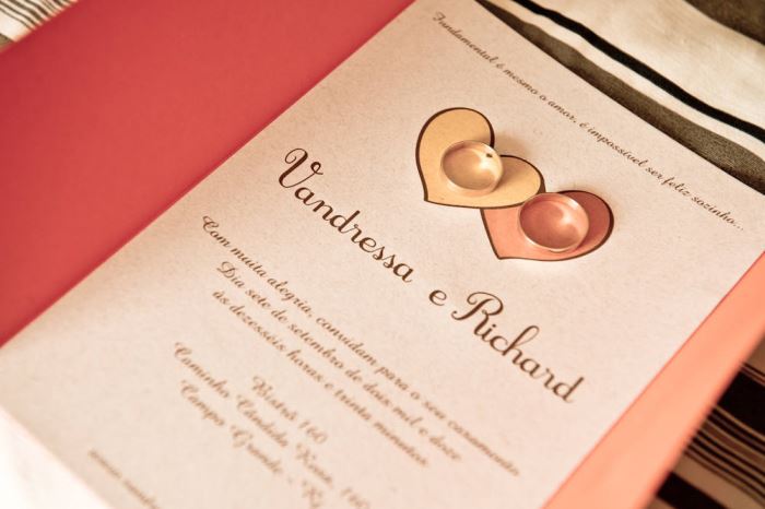 Meti a mão na massa pra fazer os convites e o site. Confesso que foi altamente estressante, mas no final, tudo deu certo. Meu pai, que já foi ourives, fez minhas alianças.