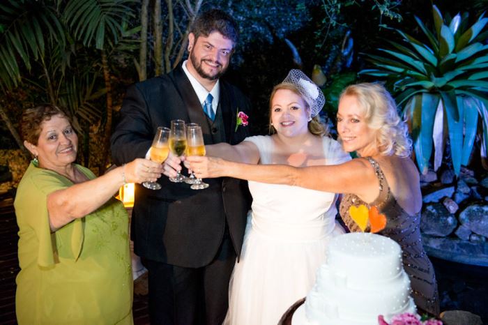 Meu bolo foi feito por uma boleira que não é do circuito bam bam bam, estava lindo e uma delícia! Meu primo fez a cerimônia, sem pompas, sem formalidades.