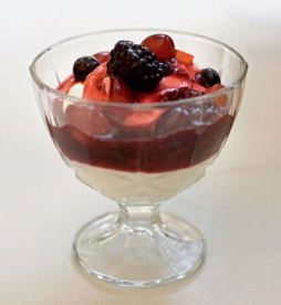 Sobremesas feitas com leite de soja e geleia de frutas
