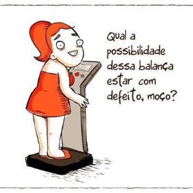 Criei coragem e fui me pesar … Sempre digo que o pior inimigo de um gordinho é a balança, e como diz uma amiga minha: “- gordinha (o) pesa de costas que é para não ver o peso!”. Mas fui lá … subi na balança, olhei no display de fundo preto e letras em amarelo néon e fiz essa perguntinha abaixo para o moço do balcão: