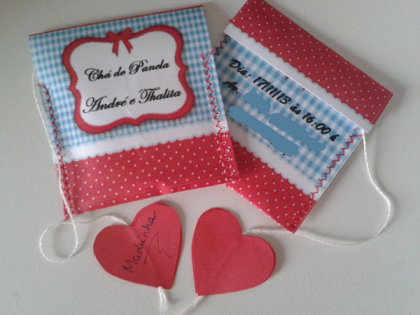 Então vivo em busca de inspirações (baratas) para todos os eventos q envolve um casamento, e agora chegou a vez do chá de panela. Gostei muito da ideia de usar o sachê de chá como convite e fui em busca de modelos (inclusive encontrei um aqui, mas não estava de acordo com o tema q escolhi) e não estava achando quase nada, então resolvi colocar a mão na massa e fazer tudo!!