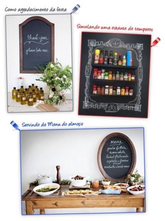 O tutorial de hoje não é invenção minha. Vi esses dias passeando pelo facebook, adorei a ideia, adaptei, testei e amei. Afinal, meu chá de panela ta chegando, o tema é boteco e lousinhas (quadro negro) para escrever com giz, tem tudo a ver.