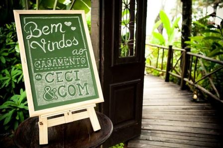 As lousas já estavam na minha lista de coisas Diy (Feitas por mim) para meu casamento. Inicialmente, ia produzir com tinta lavável fosca – que dá efeito bem parecido. Além disso, no mercado já é possível encontrar tintas próprias para isso. Mas, vi a sugestão de fazer com papel contact fosco, achei genial e beeeem mais barato (4,70 o metro).