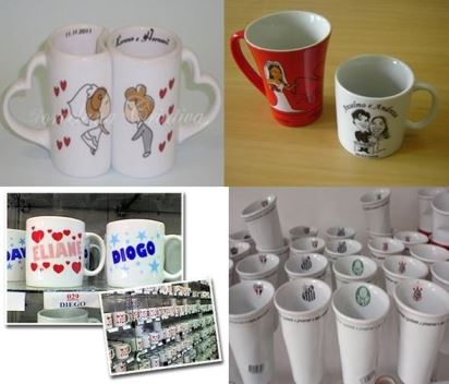 E ainda, algumas lojas que trabalham com canecas personalizadas (de porcelana, alumínio, etc), muitos nomes disponíveis a pronta entrega, outros sob encomenda.