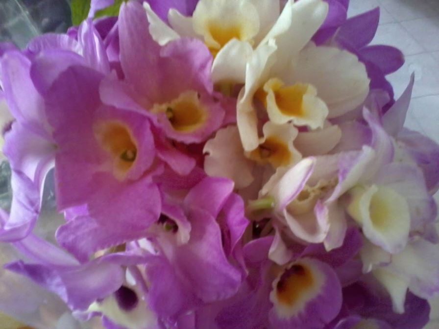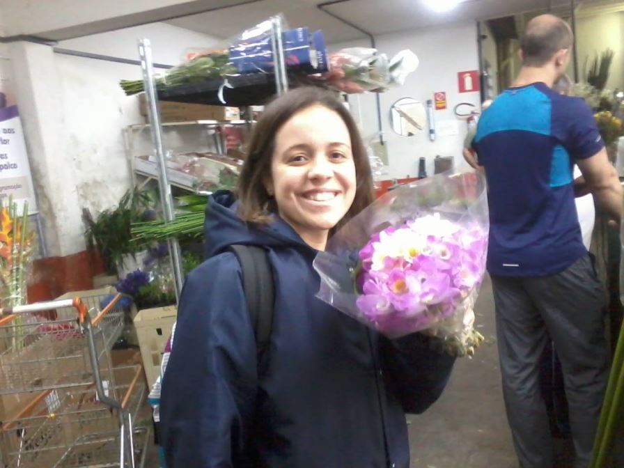 Olha eu lá com um maço de orquídeas que comprei a R$ 17 reais! Depois vocês vão ver que lindo buquê elas renderam…