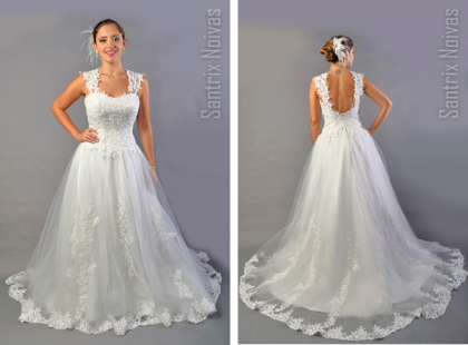 - Vestido de Noiva costas aberta em renda Cor : Branco Manequins 38 Tecido: Renda e Tule Valor R$ 2500,00