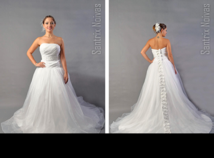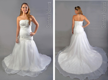 - Vestido de Noiva organza em cetim tomara que caia Cor : Branco Manequim 38 /40 / 42 Tecido : Organza & Cetim R$ 1900,00